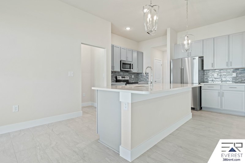 GORGEOUS 3-BED, 2-BATH HOME FEATURING AN OPEN LAYOUT WITH A BRIGHT AND FUNCTIONAL EAT-IN KITCHEN WITH STAINLESS STEEL APPLIANCES, LUXURY QUARTZ COUNTERTOPS, UPGRADED CABINETRY, A KITCHEN ISLAND WITH COUNTER BAR, AND A COZY BREAKFAST NOOK—PERFECT FOR EVERYDAY MEALS OR ENTERTAINING. SPACIOUS LIVING ROOM OPENS THROUGH SLIDING GLASS DOORS TO A COVERED PORCH AND PRIVATE, FULLY FENCED BACKYARD, IDEAL FOR RELAXING OR ENTERTAINING OUTDOORS. TILE FLOORING THROUGHOUT AND MODERN LIGHT FIXTURES.