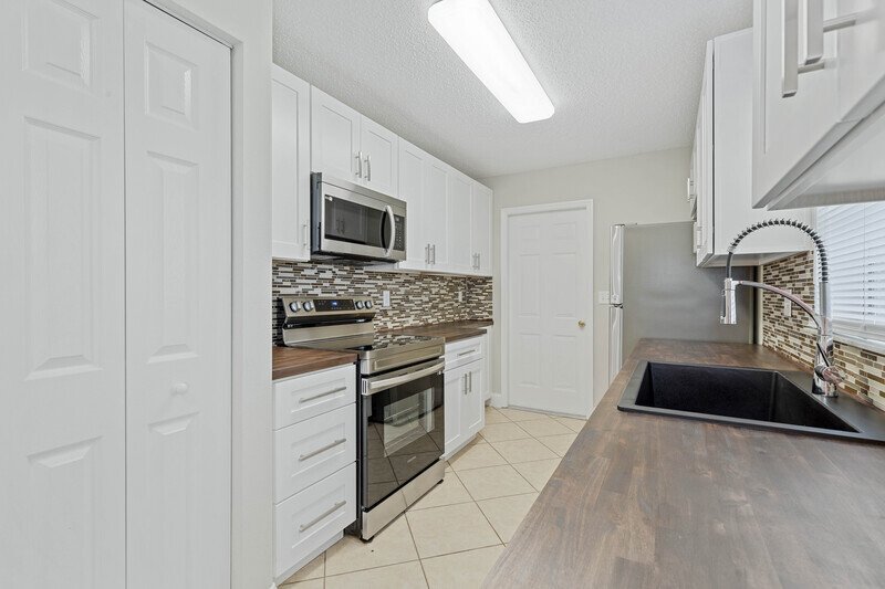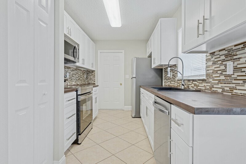 COZY AND UPDATED 3-BED, 2-BATH HOME FEATURES A BRIGHT EAT-IN KITCHEN EQUIPPED WITH BRAND-NEW STAINLESS STEEL APPLIANCES, WOOD COUNTERTOPS, A GLASS TILE BACKSPLASH, AND A COZY BREAKFAST NOOK—PERFECT FOR CASUAL MEALS OR ENTERTAINING. SPACIOUS VAULTED LIVING ROOM FLOWS SEAMLESSLY TO A PATIO AND PARK-LIKE BACKYARD, IDEAL FOR RELAXING OR OUTDOOR GATHERINGS. TILE AND WOOD FLOORING THROUGHOUT.
