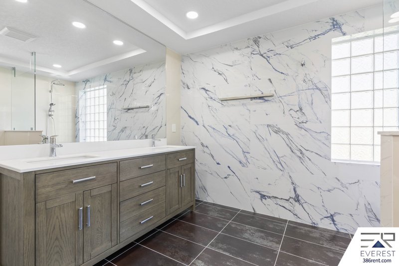 FEATURING A SPLIT BEDROOM LAYOUT OVER TWO STORIES; 3 BEDROOMS INCLUDING THE PRIMARY SUITE ARE ON THE MAIN FLOOR AND A MASSIVE 4TH BEDROOM/BONUS ROOM ON THE SECOND FLOOR WITH EN-SUITE BATH. THE PRIMARY SUITE BOASTS A DOUBLE TRAY CEILING, WALK-IN SHOWER, DUAL-SINK VANITY, AND A WALK-IN CLOSET.